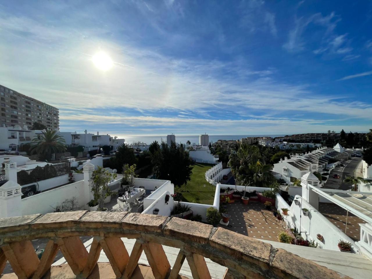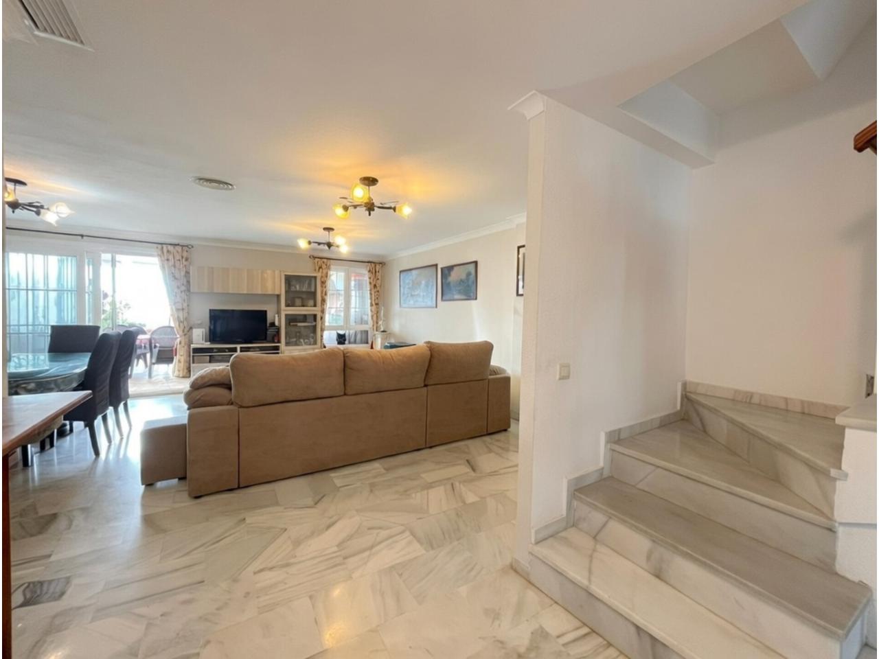 Impresionante chalet adosado de tres plantas en una de las zonas más cotizadas y exclusivas de Torrequebrada a solo 12 minutos caminando del mar y de las playas de Benalmádena tranquilidad absoluta, urbanización muy demandada, orientación privilegiada y vistas despejadas al Mediterráneo desde casi todas las estancias